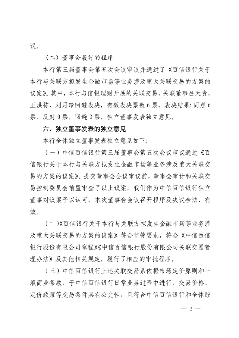 中信百信银行股份有限公司重大关联交易公告