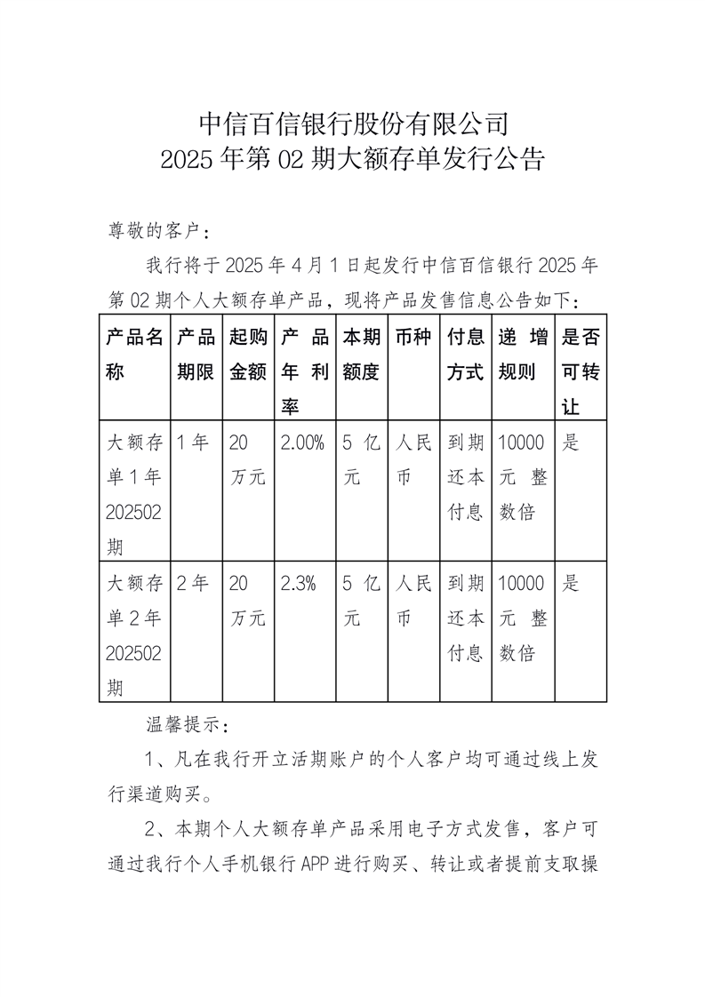 2025年第2期大额存单发行公告